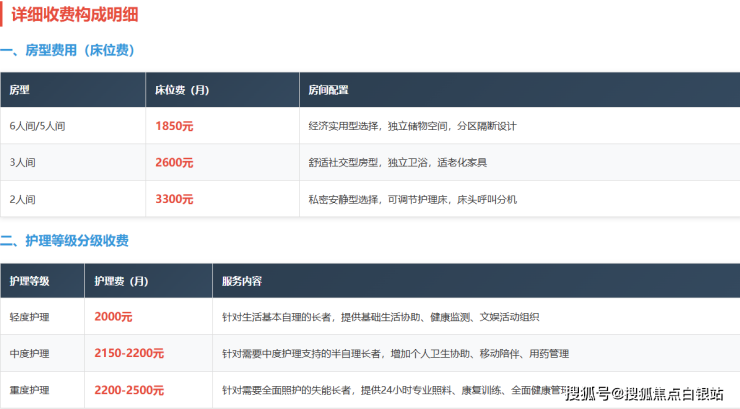 基础价格区间:4850元/月起(具体根据护理等级和房型组合而定)