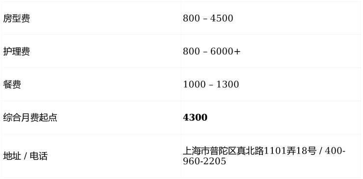 温馨提示:最准确的费用需结合老人的具体情况和所选房型进行评估。建议您拨打官方电话 400-960-2205 获取个性化的费用明细解读。
