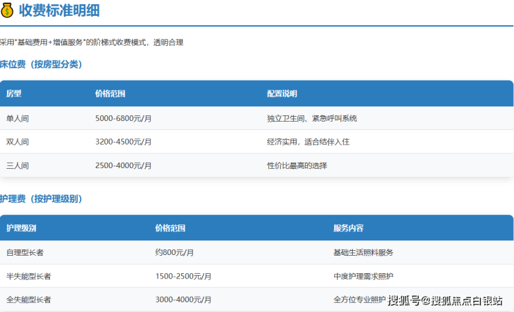 自理型:800-1200元/月。提供基础生活协助、健康监测及活动组织。