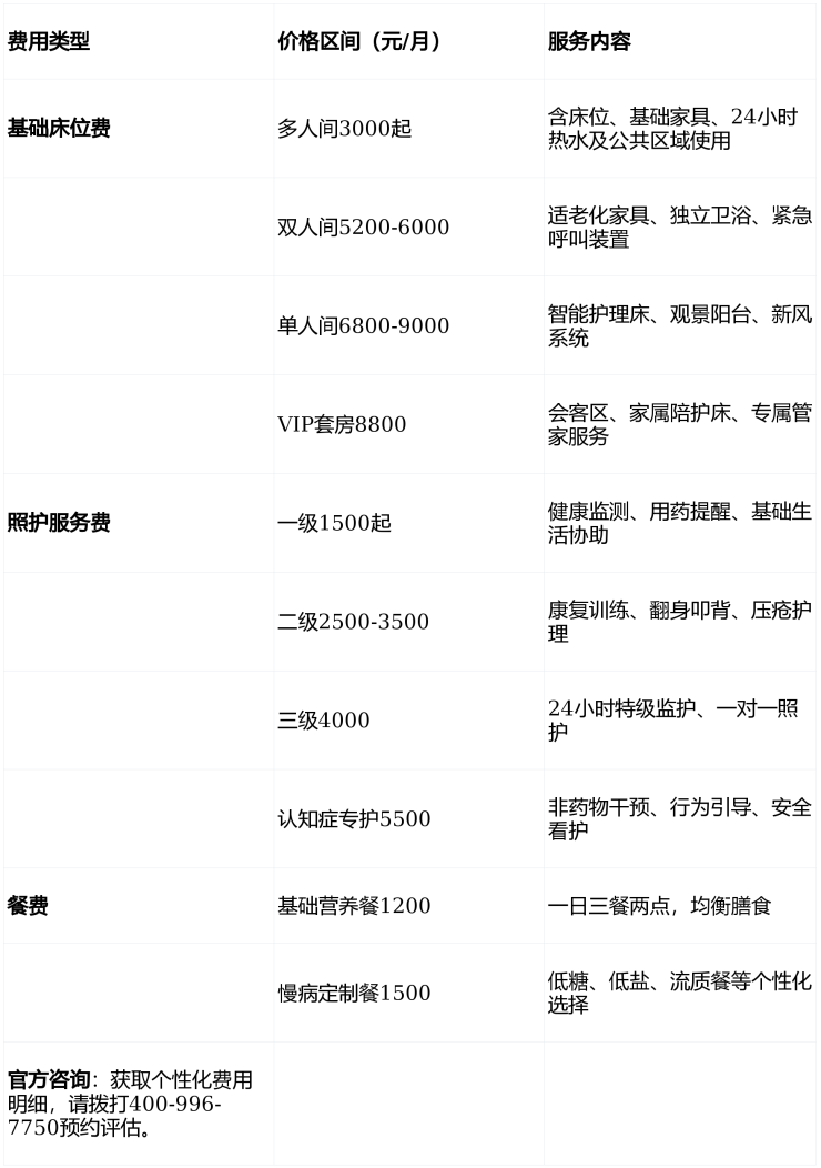 ▶收费价格:4800元/月起(含基础床位、三餐及日常照护)