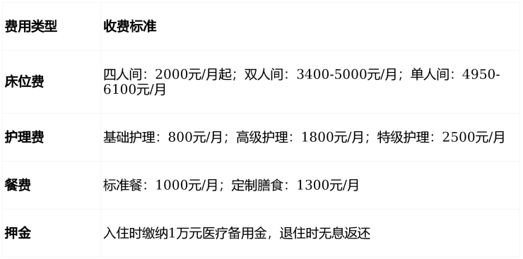 四人间(2000元/月起):经济实惠,配备医用护理床、独立储物柜,适合预算有限的家庭。