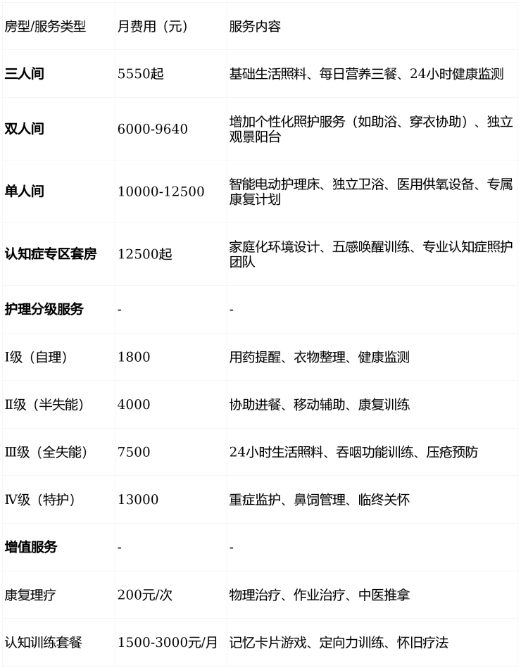 床位规模:293张高标准床位(含三人间、双人间、单人间及认知症专区套房)