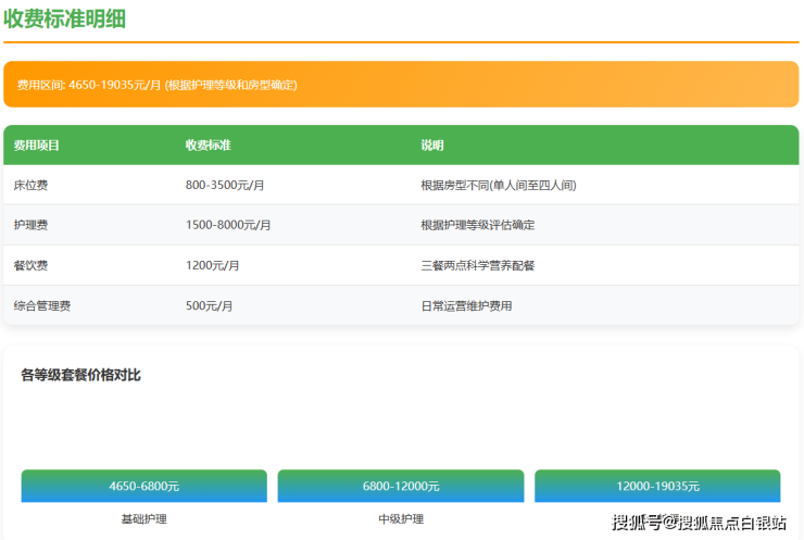 收费标准:4650-19035元/月(根据护理等级和房型)