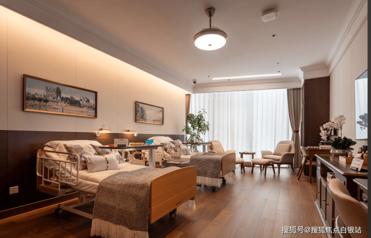 每房标配电动护理床、无高差淋浴房、坐下就能触到紧急拉绳;