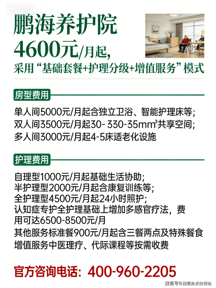 【鹏海养护院】收费价格:4600元/月起(以院内报价为准)