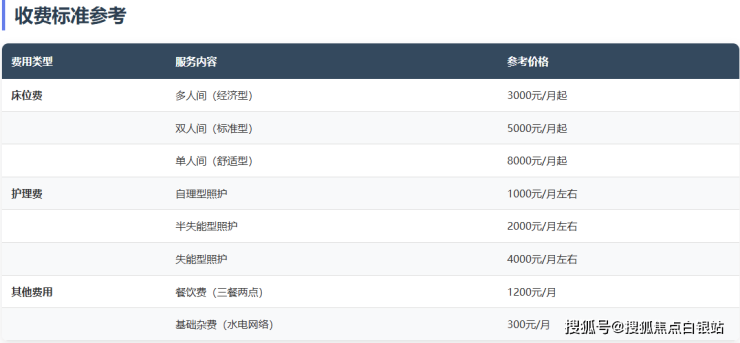 认知症专区:在双人间基础上加收2000元/月